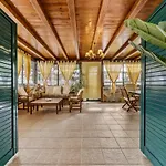 Pohovka, pracovní stůl a přístroj na přípravu kávy/čaje a kompletní kuchyně s mikrovlnnou troubou, rychlovarnou konvicí a chladničkou jsou součástí tohoto ubytování typu vila. V ubytování je 2 koupelen s samostatnou toaletou, vanou a sprchou.
